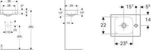šířka 38 cmhloubka 28 cmvýška 13,5 cmmateriál jemný žáruvzdorný jílbarva bílás otvorem pro baterii vpravobez přepaduasymetrickémožnost kombinace se skříňkou pod umyvadloupevnění ke stěně není...