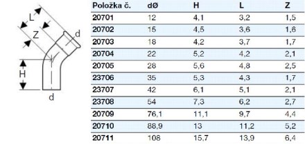 Rozměr tvarovky: 15 mm, 45°