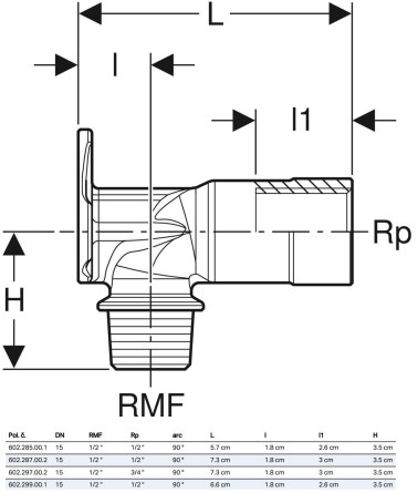 Rozměr tvarovky: DN 15x1/2", 90°