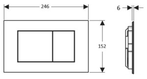 šířka 246 mmhloubka 6 mmvýška 152 mmmateriál sklobarva lesklá bílápro 2 množství splachovánítvar tlačítka hranatýovládání zepředupro tloušťky obkladu ? 15 mmke spuštění splachování u Sigma...