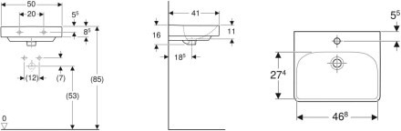 GEBERIT SMYLE SQUARE umývátko 50 cm, s otvorem pro baterii a přepadem