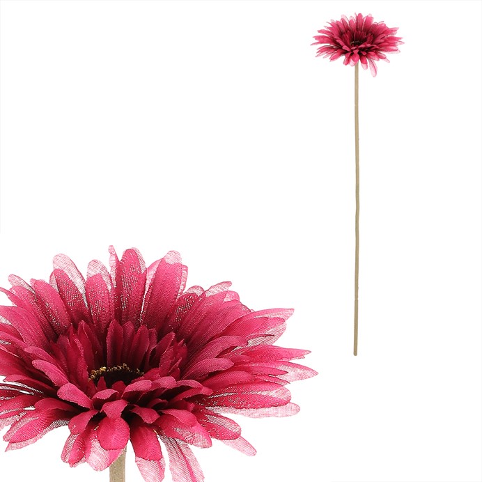 Dotaz na produktUmělá gerbera v krásné fialové barvě rozzáří každou květinovou výzdobu. Samotný květ na pevném stvolu působí elegantně a díky detailnímu zpracování vypadá jako čerstvě utržený z květinové zahrady. Skvěle se hodí jako přízdoba do kytic nebo samostatně do vázy, kde si uchová svůj půvab napořád.