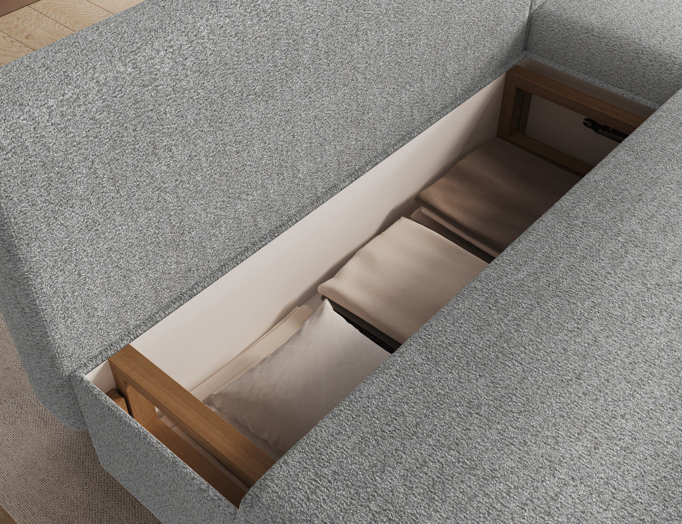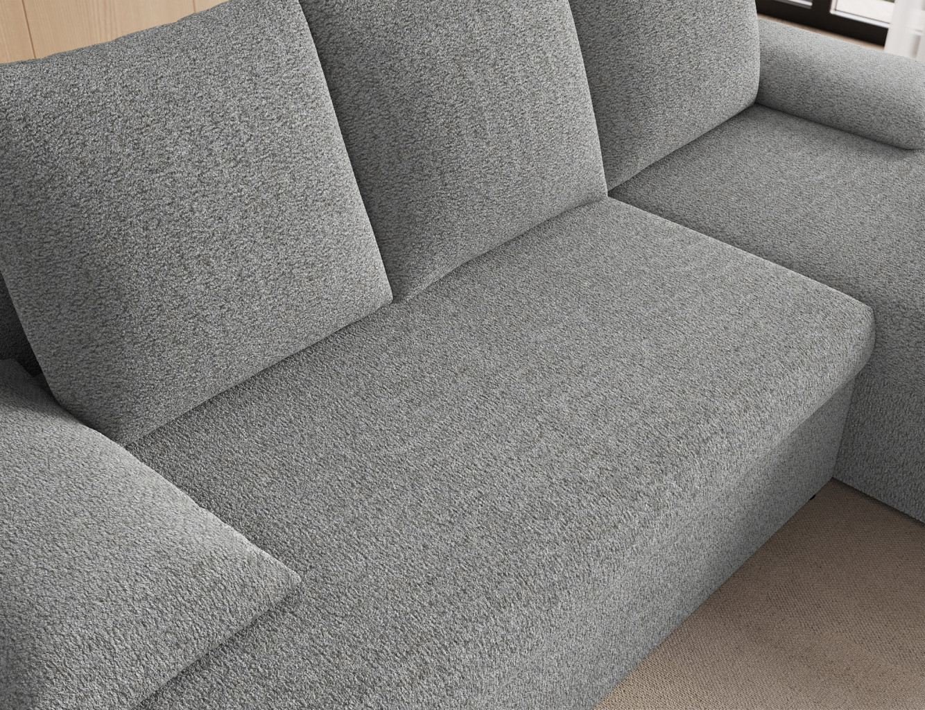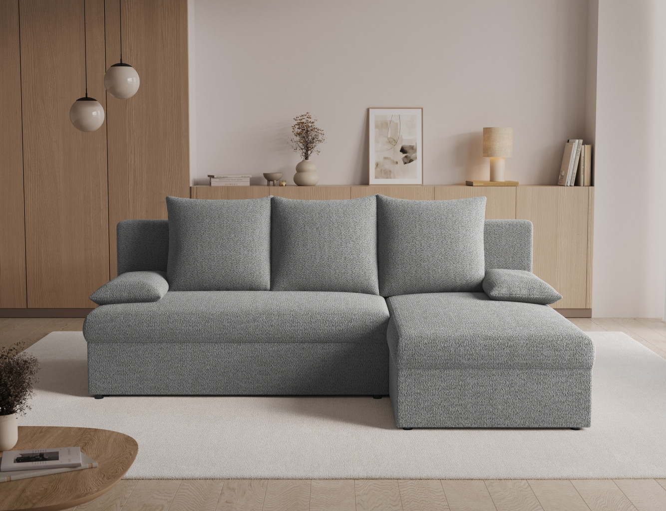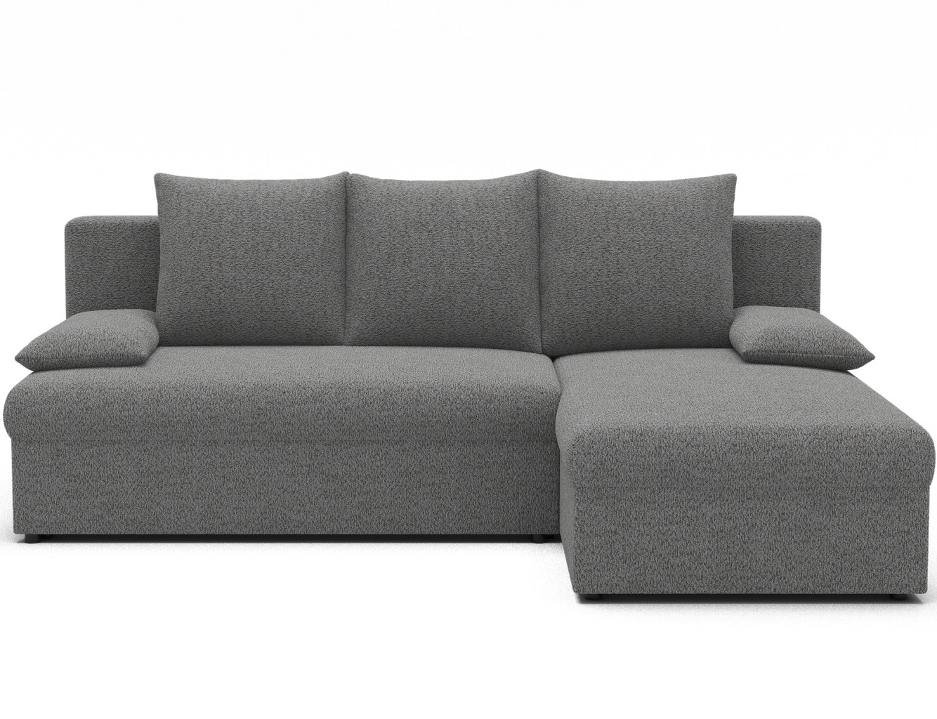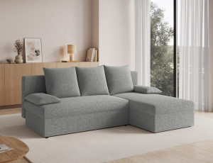 Dotaz na produktGino is an elegant, classic and simple solid corner sofa, which is a compact multifunctional furniture with dimensions of 201 x 143 x 90 cm. This comfortable piece of furniture will provide its user with maximum comfort on a daily basis, convenience at night and overall satisfaction - regardless of the time. The 201 x 124 cm sleeping surface allows you to enjoy exceptional softness in daily use. An additional advantage is the spacious bedding container. The intuitive system of unfolding the furniture in the form of a sliding bottom, allows you to quickly adjust the corner sofa to your needs. Positive sensations are enhanced by the way the seat is made with T30 foam, which provides softness with simultaneous flexibility. Such filling minimizes the risk of unsightly indentations, damage and abrasions even during prolonged use. The minimalist design of the Gino corner charms with its simplicity, geometric shape and will certainly fit into any possible interior.Fabrics: Royal 04