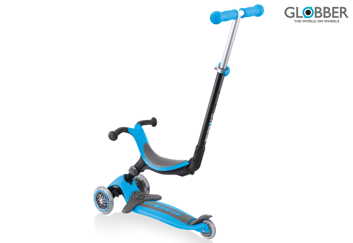 Dotaz na produkt Na splátky ještě dnesGlobber Koloběžka Go Up Foldable Plus Sky Blue Vše v jednom - koloběžka pro batolata se sedátkem s patentovaným, přizpůsobivým designem se mění z režimu pro děti na jízdu vsedě s rukojetí pro rodiče, odrážedlo a koloběžku. Režimy jízdy na odrážedle a vsedě s rodičovskou rukojetí jsou určeny pro děti ve věku 15 - 36 měsíců a režim koloběžky pro děti ve věku 3 - 7 let. GO • UP FOLDABLE PLUS koloběžka se sedátkem má odnímatelnou opěrku nohou s lehce odšroubovatelným knoflíkem pro bezpečnou a pohodlnou jízdu na koloběžce v jízdním režimu. Snadno transformujte svou koloběžku GO • UP FOLDABLE PLUS se sedadlem a přepínejte mezi různými režimy kdykoliv, a to díky našemu 100% designu bez použití nářadí. Naše koloběžka s měkkým sedadlem TPR, které je také nastavitelné pomocí bočního knoflíku v 2 výškách bez použití nářadí a koloběžka kde se da výška T-řídítek nastavit ve 3 výškách. Koloběžka GO • UP FOLDABLE PLUS se sedadlem se změní na bezpečnou skládací koloběžku pro děti, která je dodávána s naším patentovaným skládacím systémem s snadno použitelným bočním tlačítkem na straně koloběžky pro děti. Koloběžka pro děti je vyrobena z velmi nízké kovové vyztužené konstrukce, která unese až 50 kg a dodává se s širokou, protiskluzovou kompozitní podložkou bezpečné kolobežkovanie Proč kupovat 3 produkty pokud je můžete mít v jednom? Maximální zatížení sedadla pro jízdu v sedě s rodičovskou rukojetí a odrážedla - 20kg Maximální zatížení koloběžky - 50kg