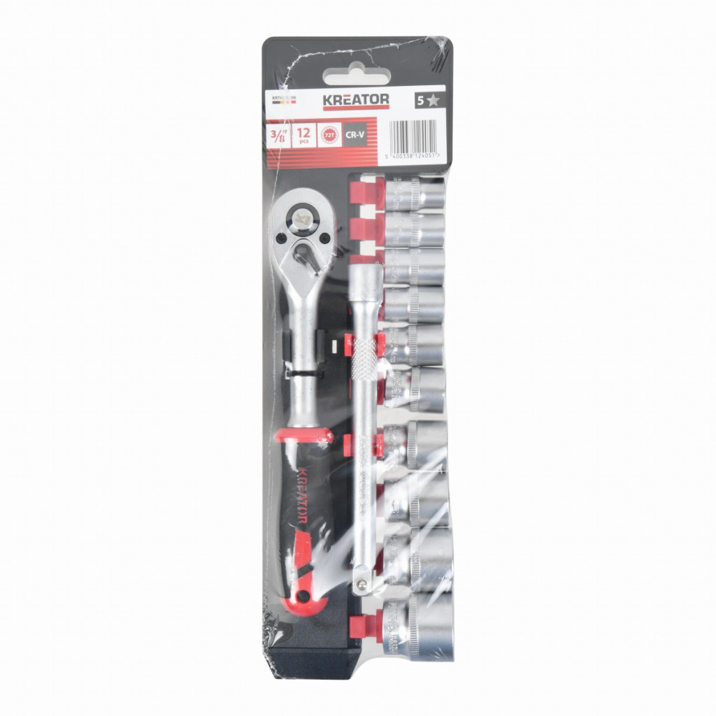 Dotaz na produktTuto 12dílnou sadu nástrčných klíčů KRTH30106 z naší řady Kreator použijte k povolování nebo utahování matic a šroubů. Sada obsahuje různé velikosti, takže budete mít vždy po ruce ten správný nástrčný klíč. Nástrčné klíče mají upínací rozměr 3/8" a jsou vyrobeny z robustní chrom-vanadiového slitiny.Sada obsahuje:Nástavec 150 mm72T ráčna 3/8Nástrčné klíče: 10 / 11 / 12 / 13 /14 / 15 / 17 / 19 / 22 / 24mm