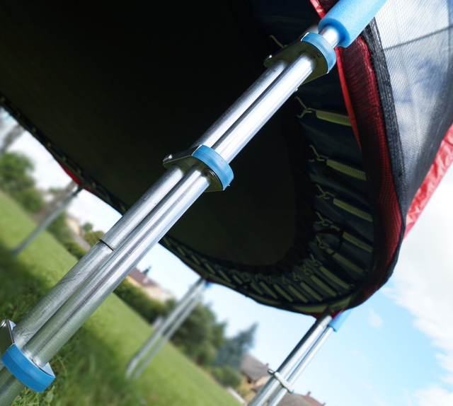 Konkurenční trampolíny často mývají tyto tyče ukončeny 50 cm nad zemí.