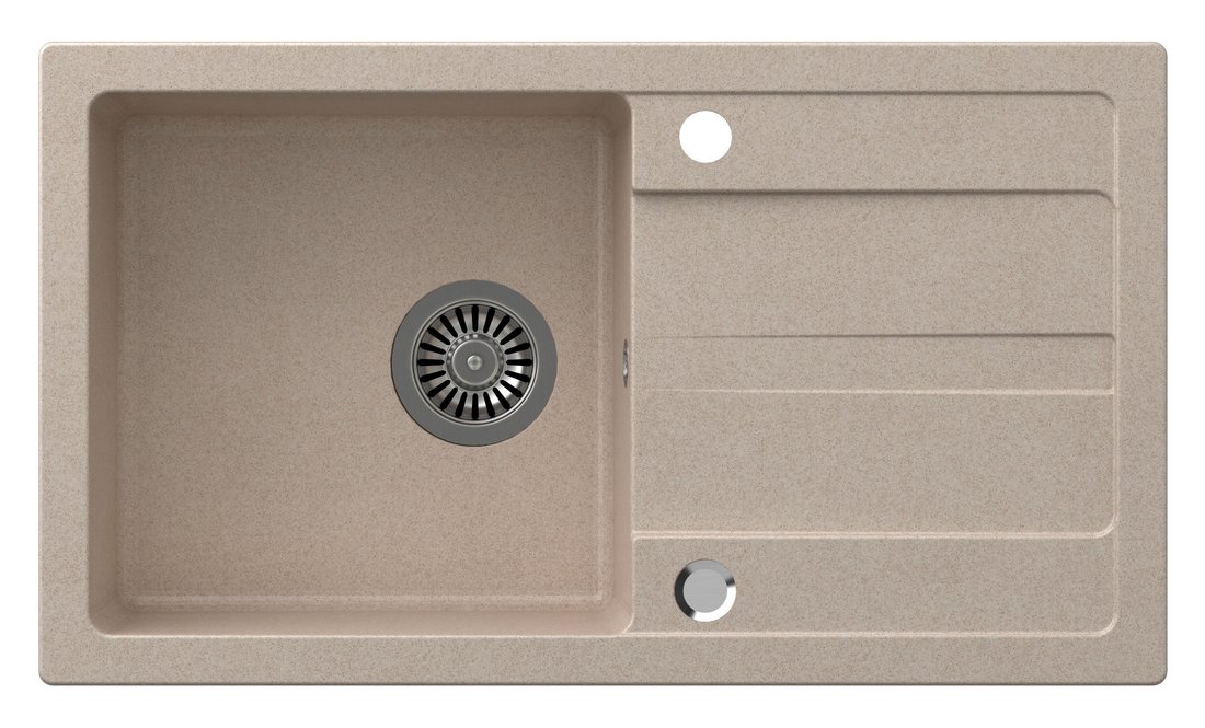 Speciální složení materiálu použitého pro výrobu (kamenná drť, např. křemičitého písku - žuly a polymerové pryskyřice) a jeho vysoká hustota garantuje bezpečné používání výrobku, a proto jsou granitové dřezy tak oblíbené. Na granitovém dřezu nejsou vidět zaschlé kapky, je odolný vůči skvrnám a neztrácí barvu. Povrch je odolný proti poškrábání a odolává teplotám až do 180 °C. Při jejich údržbě se používají obvyklé čistící prostředky nebo prostředky na nádobí s jemným abrasivem. Výhodou je rozmanitá barevná nabídka.