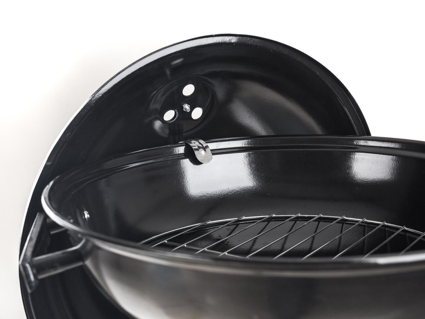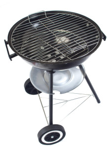 Gril BALL je kulatý gril s poklicí, pojezdovými plastovými koly a popelníkem.