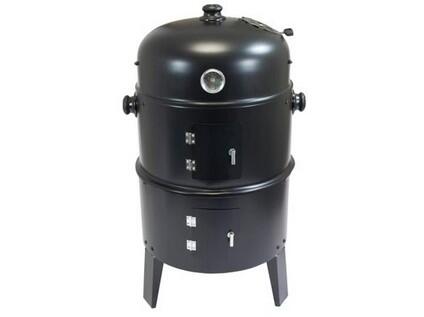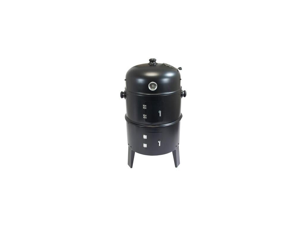 Dvě části mají dvířka pro přikládání a kontrolu ohně, vrchní část teploměr do 300 st. C, 2 tyče pro zavěšení uzených pokrmů a otvor pro vypouštění kouře.