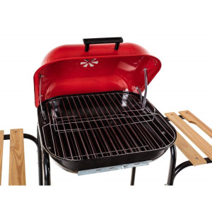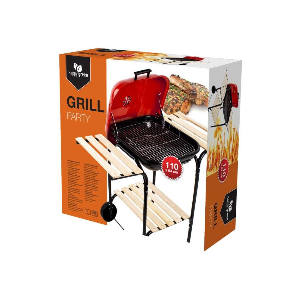 Dotaz na produkt Na splátky ještě dnesVelký PARTY gril je vybaven dřevěnými odkládacími policemi a pojezdovými koly. Povrch ohniště je smalt, povrch víka prášková červená barva. Gril je bez možnosti nastavení výšky roštu a na základě toho je grilovací plocha velice stabilní. Rozměry: ohniště 45 x 45 cm, tloušťka stěny ohniště 0,6 mm, víka 0,4 mm.