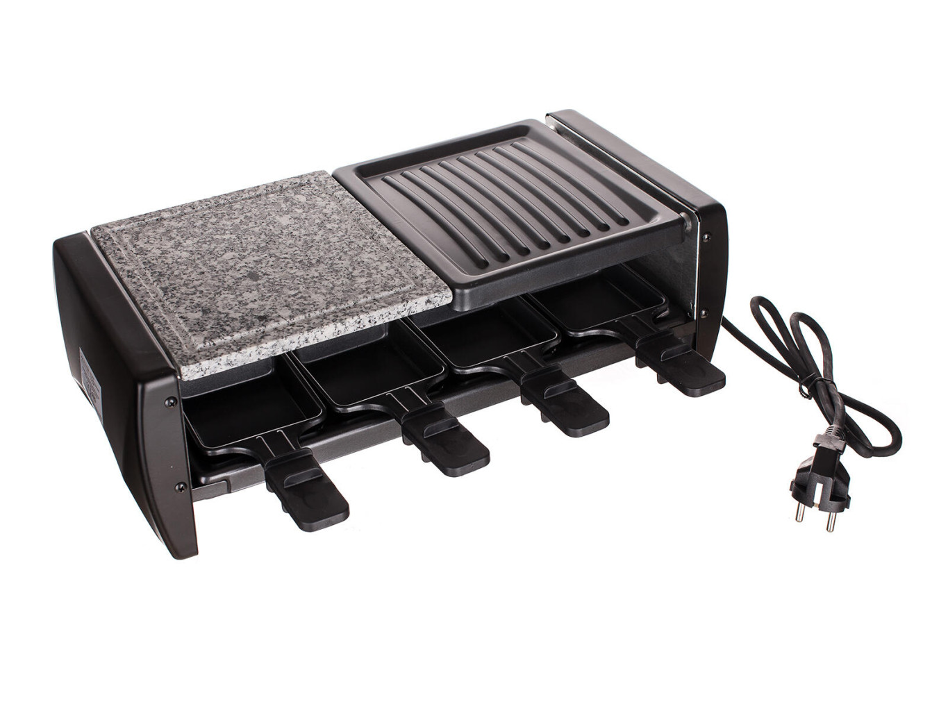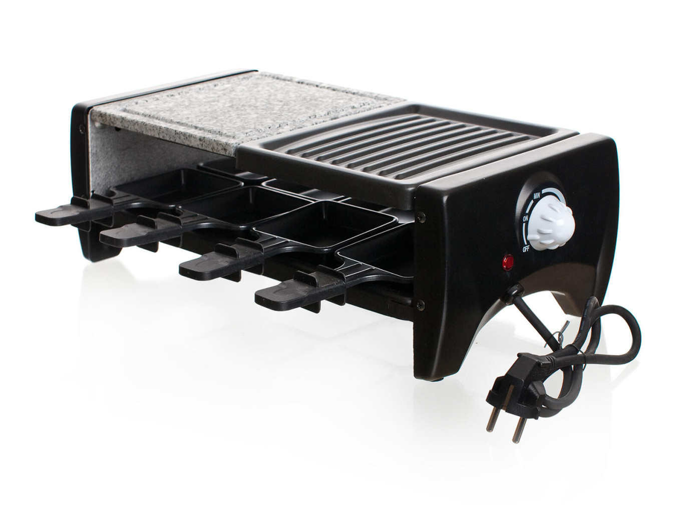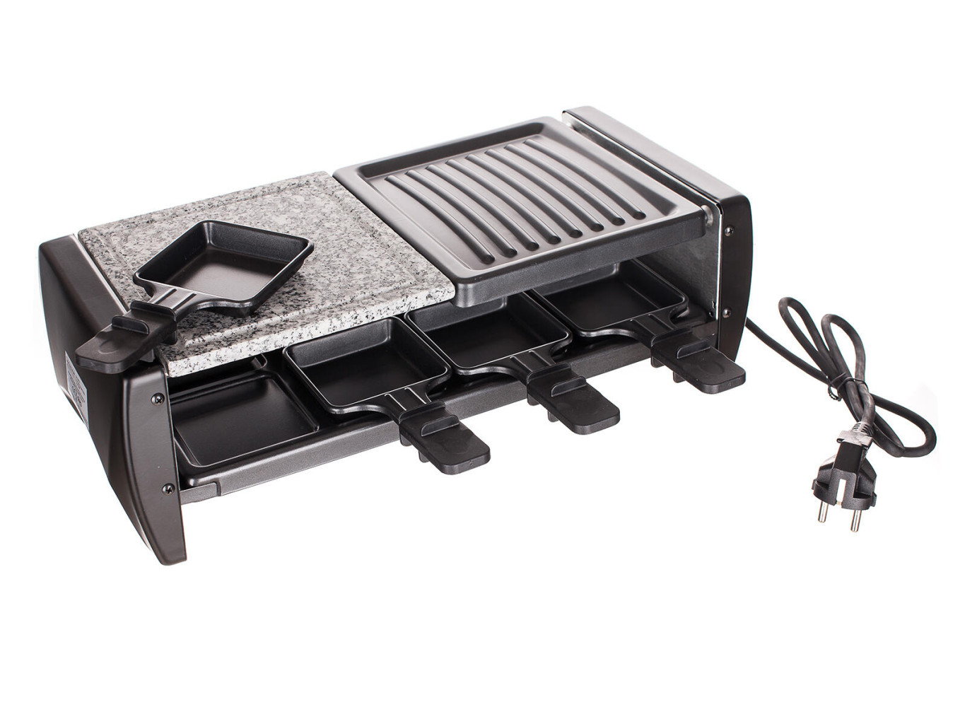 Dotaz na produkt Na splátky ještě dnesPředstava grilování byla vždy spojena se zahradou. Díky elektrickému grilu si však můžete užít grilování po celý rok u vás doma nebo na balkónu. Grilovat můžete na grilovací desce nebo na přírodním kameni, díky kterým dochází ke zdravější úpravě pokrmů se zachování jejich přirozené chuti a vůně. Součástí balení je 8 pánviček s nepřilnavým povrchem pro přípravu raclette, které dodají vašemu grilování nový rozměr. Celý přístroj je rozebíratelný a po vychladnutí se snadno čistí.