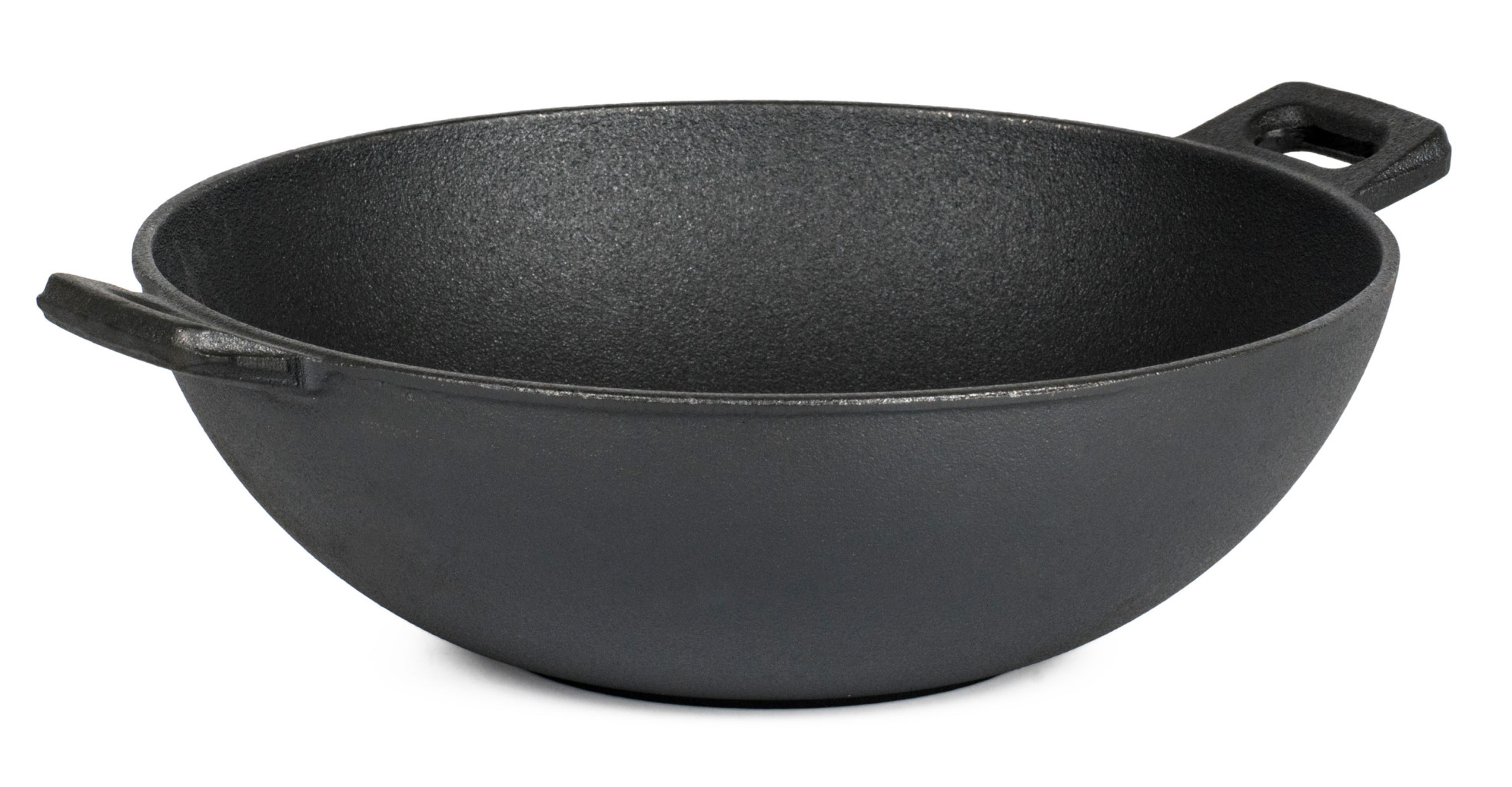 Dotaz na produktZnásobte svůj požitek z dokonalého grilování – grilujte na litinovém nádobí. Grilovací wok pánev z vysoce kvalitní litiny perfektně rozvádí a udržuje teplo. Litinová grilovací wok pánev je již vypálená a připravená k použití, takže první vypalování (jinak zvané také seasoning) už provádět nemusíte. Objevte kouzlo grilování na litině a užijte si všechny jeho výhody.