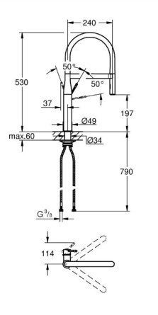 - s flexibilní hygienickou GROHFlexx kitchen hadicí z materiálu santopren