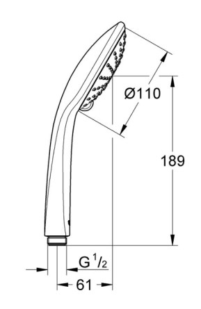 průměr 110 mmcelková délka 244 mmvelikost připojení G 1/2"ruční sprcha 2 proudy - Rain, SmartRainmax. průtok při tlaku 3 bar 13,5 l/minmateriál plastbarva chromGROHE DreamSpray (vyvážený tok vody s...