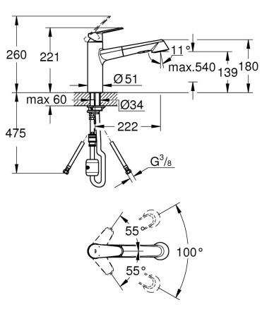 výška 221 mmvývod 222 mmkomfortní zóna 139 mmrozměr G 3/8barva chromstredně vysoká výpusťjednootvorová montážkeramická kartuše 35 mmGROHE SilkMove (kartuše poskytující plynulé a přesné ovládání...