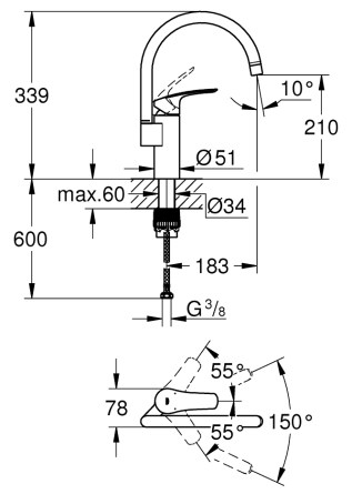 výška 339 mmvývod 183 mmpřipojení G 3/8barva chromvysoká výpusťjednootvorová montážkeramická kartuše 35 mmGROHE SilkMove (kartuše poskytující plynulé a přesné ovládání proudu a teploty vody)GROHE...