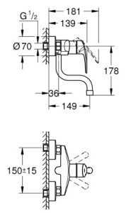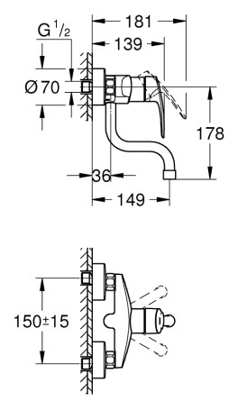 rozteč 150 mmvývod 149 mmpřívod G 1/2barva chrommontáž na stěnukeramická kartuše 35 mmGROHE SilkMove (kartuše poskytující plynulé a přesné ovládání proudu a teploty vody)GROHE Long-Life (odolný...