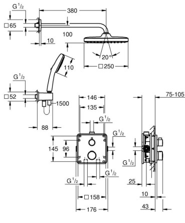- podomítkovou termostatickou baterii, včetně základního tělesa