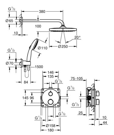 - podomítkovou termostatickou baterii, včetně základního tělesa