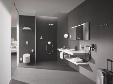 - GROHE DropStop (žádné odkapávání z horizontální hlavové sprchy po uzavření ventilu)