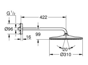 - délka sprchového ramena 422 mm