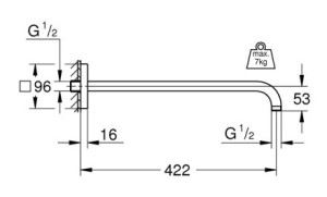 délka 422 mmrozměr rozety 96x96 mmpřipojení G 1/2"nosnost 7 kgmateriál kovbarva chromGROHE Long-Life (odolný povrch pro snadné čištění)nástěnná instalacese čtvercovou rozetoulze použít pro všechny...