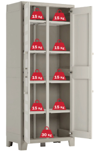 Dotaz na produkt Na splátky ještě dnesLuxus je mít v zahradě či v dílně vše po ruce! S venkovní skříní GULLIVER MULTISPACE budete mít vše potřebné přímo na vaší zahradě, v garáži či v dílně. Skříň je vyrobena z kvalitního plastu, takže nemusíte řešit problémy s korozí. Když se k dobrým vlastnostem plastu přidá nespočet skvělých vychytávek, vzniká policová skříň GULLIVER MULTISPACE – bytelná a vzhledná ochrana pro zahradnické náčiní, hadice, ale i deky a vše ostatní, co na zahradě potřebujete. Samozřejmě je vhodná i do dílny či garáže. Díky nastavitelným policím snadno umístíte i vysavač, koště či jiné vetší předměty. kvalitní kovové panty zajišťují trvalou funkčnost otvírání a pevné dolehnutí dveří police si snadno přizpůsobíte díky SLO (Security Lock Off), bezpečnostní pojistce skříň pevně stojí na nastavitelných nohách, a tak si můžete jejich výšku přizpůsobit dle libosti pro ještě větší stabilitu je spodek skříně opatřen pátou nohou díky UV ochraně barva vydrží a zachová si svou intenzitu vybavená pacičkami na visací zámek 8 polic, nosnost každé police 15 kg, nosnost dna skříňky 30 kg