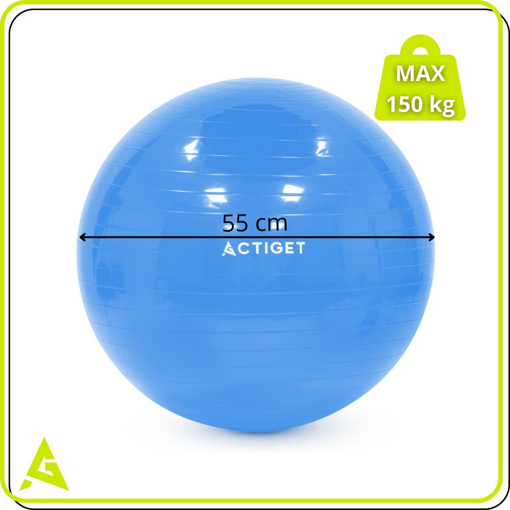 Gymnastický míč 55 cm + pumpička ACTIGET ACT0142 modrý je ideální pomůcka pro efektivní domácí trénink i rehabilitační cvičení. Průměr 55 cm je vhodný zejména pro menší postavy nebo přesně cílený trénink. Odolný a pevný materiál zajišťuje dlouhou životnost, zatímco protiskluzový povrch poskytuje jistotu a stabilitu při každém pohybu. Součástí balení je pumpička a náhradní kolík.