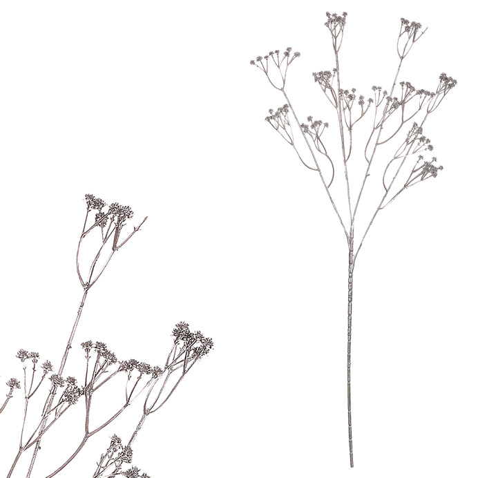 Dotaz na produktUmělá větev Gypsophila v elegantní stříbrné barvě přináší do interiéru jemný dekorativní prvek. Vyrobena z plastu, větev věrně napodobuje drobné kvítky a větvičky, které působí vzdušně a lehce. Hodí se pro aranžmá v květinových vazbách, do vázy nebo jako samostatná dekorace, která oživí každý prostor.