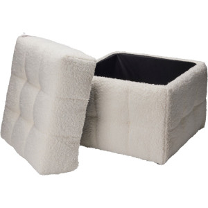 Konstrukce z MDF dřevovlákna a překližky zajišťuje pevnost a stabilitu, zatímco potah z příjemného teddy materiálu dodává taburetu moderní a útulný vzhled.