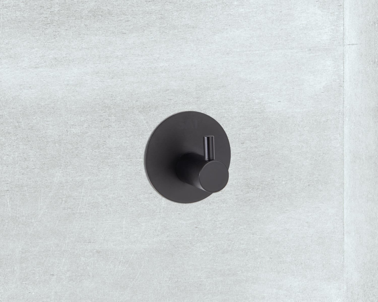 Abychom Vám dali možnost sladit Vaši koupelnu do posledního detailu - v případě, že si vyberete stále populárnější černou barvu zařizovacích předmětů - zařadili jsme do sortimentu praktické kovové černé háčky vyrobené z nerezové oceli s černým matným nástřikem.