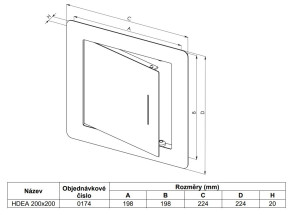 rozměr servisního otvoru 198x198 mmcelková šířka dvířek 224 mmcelková výška dvířek 224 mmhloubka 20 mmz vysoce kvalitního hliníkového plechu tloušťky 1 mmzazdívací rámeček je plastovýbarva antracit...