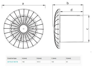 AVPLUS100TB | 104 m³/h | 30 Pa | 38 dB | 230 V | 15 W | 2400 ot/min |