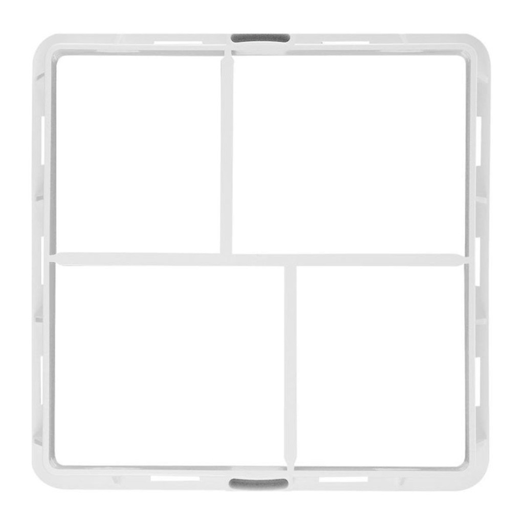 Postup instalace: Rámeček zazdít (zasádrovat), vystřihnout kříž, mřížku přišroubovat do půlměsíců v rámečku (umožňují natočení mřížky), nasadit plastové krytky na vruty.