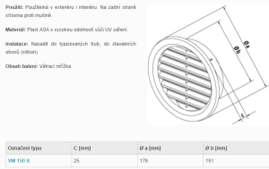 Dotaz na produktPraktická větrací mřížka kruhová, je použitelná v exteriéru i interiéru. Na zadní straně síťovina proti mušině.