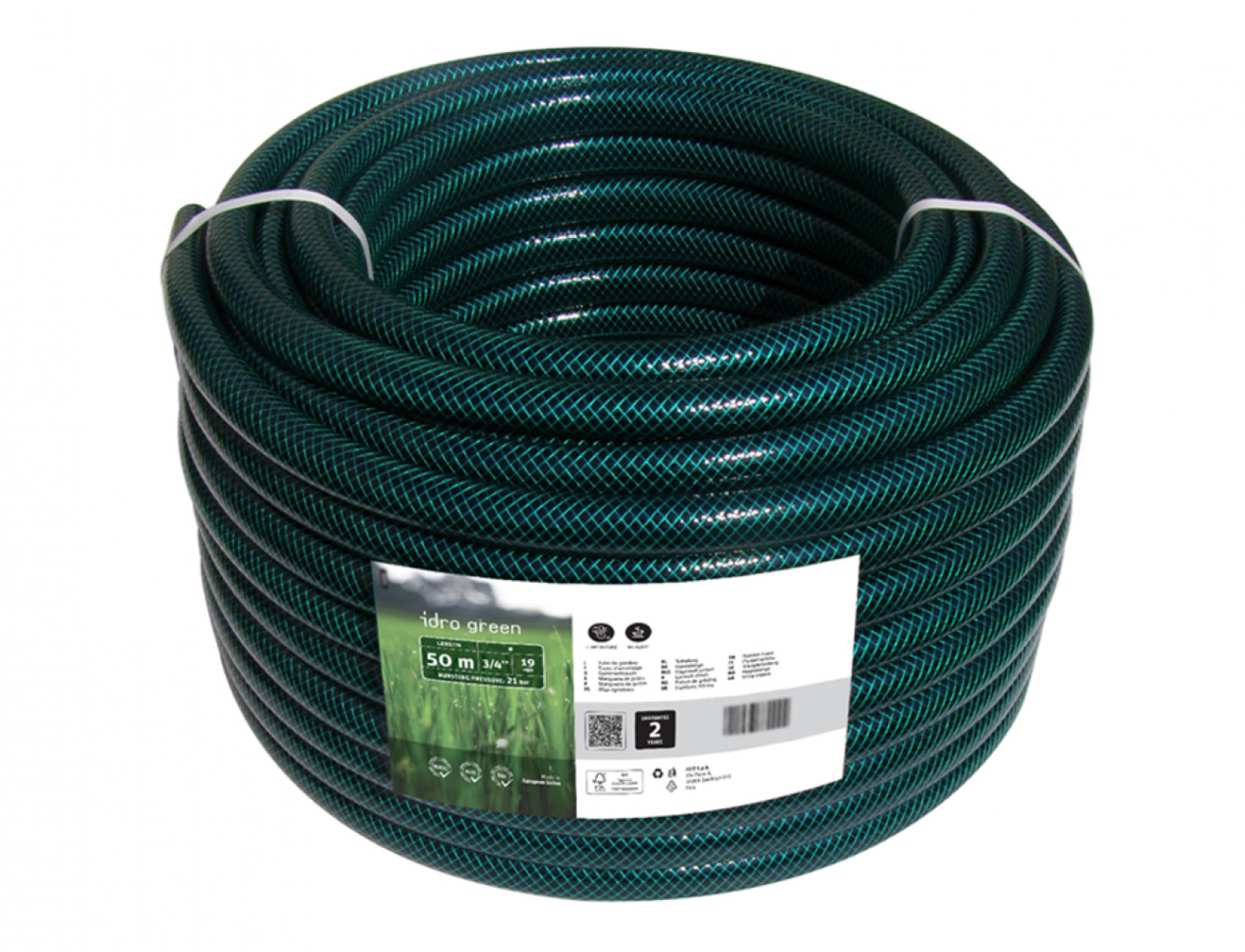 Dotaz na produkt Na splátky ještě dnesZahradní 3/4" hadice s průhlednou zelenou vnější vrstvou, pletenou textilní výztuhou a černou vnitřní vrstvou proti řasám. Poruchový tlak: 21 barů. Délka: 50 m. Barva: zelená.