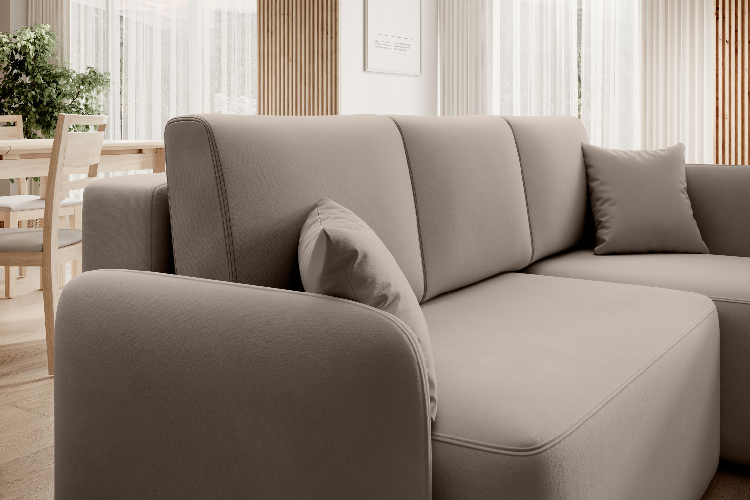Dotaz na produkt Na splátky ještě dnesRohová pohovka Hadson je elegantní kus nábytku, který dodá vašemu interiéru moderní charakter. S působivou šířkou 206 cm a hloubkou 150 cm poskytuje prostorný prostor pro relaxaci celé rodiny. S výškou 89 cm s polštáři kombinuje Hadson pohodlí s estetikou. Hloubka sedáku 49 cm a výška sedáku 47 cm nabízejí pohodlné místo k odpočinku. Hadson může také sloužit jako postel s působivou plochou 115x184 cm, ideální pro hosty. Robustní nohy vysoké 2,5 cm dodávají celé konstrukci stabilitu. Výška opěradla 42 cm podporuje pohodlí během používání. Mechanismus DL umožňuje snadnou transformaci rohové pohovky na pohodlný prostor na spaní. Hadson je nejen stylový, ale i funkční a přináší eleganci do každé místnosti.Látky: Sola 18