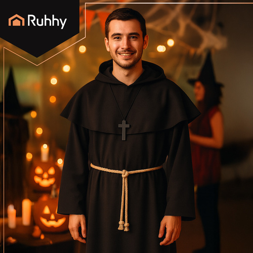 Dotaz na produktTradiční mnišský oděv s hnědou tunikou, velkou kapucí, provazem k uvázání kolem pasu a velkým křížem je kompletní převlek, který se dokonale hodí k atmosféře středověkých plesů, Halloweenu a tematických večírků. Volný střih zajišťuje pohodlí, zatímco symbolický styling dodává auru tajemna a klidu. Tento kostým přitahuje pozornost a umožňuje vám ztělesnit postavu plnou charakteru.