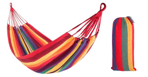 Dotaz na produktHamak charakteryzuje się najwyższą jakością wykonania i piękną kolorystyką. W komplecie znajduje się pokrowiec w kolorze hamak, linka mocująca i dwa stalowe haki Hamak idealnie nadaje się do ogrodu czy na taras. Wspaniałe rozwiązanie dla wypoczynku na świeżym powietrzu. Łatwy w montażu, zajmuje mało miejsca. Zaś regulowana poprzeczka zapewnia jeszcze większy komfort. Gwarantujemy, że szeroki wybór modeli, wielkości oraz kolorów pozwoli Państwu odnaleźć odpowiedni hamak dla siebie i swoich bliskich.Producent: Bluegarden
