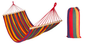 Dotaz na produktHamak 1-osobowy charakteryzuje się najwyższą jakością wykonania i piękną kolorystyką. W komplecie znajduje się pokrowiec w kolorze hamaka oraz linka mocująca. Hamak idealnie nadaje się do ogrodu czy na taras. Wspaniałe rozwiązanie dla wypoczynku na świeżym powietrzu. Łatwy w montażu, zajmuje mało miejsca. Zaś regulowana poprzeczka zapewnia jeszcze większy komfort. Gwarantujemy, że szeroki wybór modeli, wielkości oraz kolorów pozwoli Państwu odnaleźć odpowiedni hamak dla siebie i swoich bliskich.Producent: Bluegarden