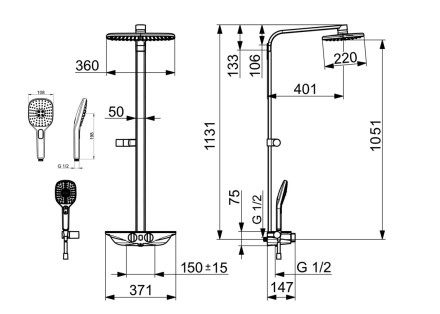 - délka ramena sprchy 401 mm