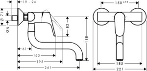 vývod 261 mmrozteč 150 mmkeramická kartušerozsah otáčení 180°maximální průtok při 0,3 MPa 12 l/minnormální proud (široký, bohatý proud)barva chromQuickClean (zabraňuje usazování vodního...