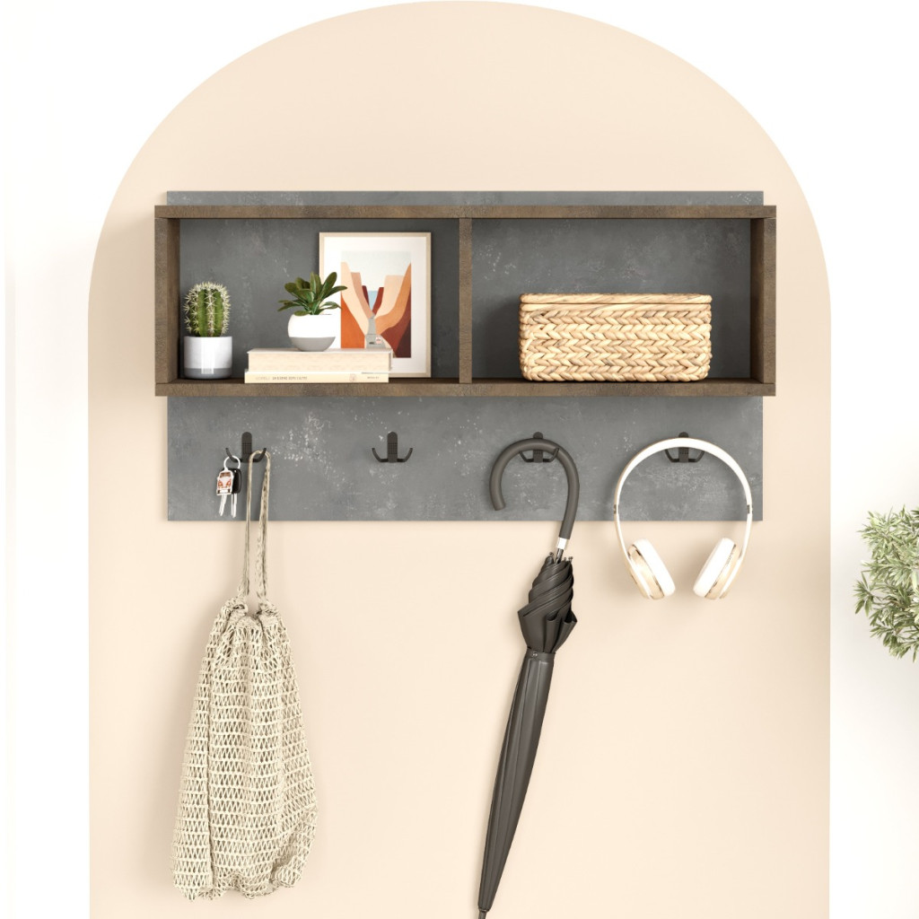 Vybavení tohoto panelu zahrnuje odkládací polici pro uskladnění různých předmětů a praktické věšáky na zavěšení oděvů. Nechte svou předsíň ožít s moderním a vkusným věšákovým panelem.