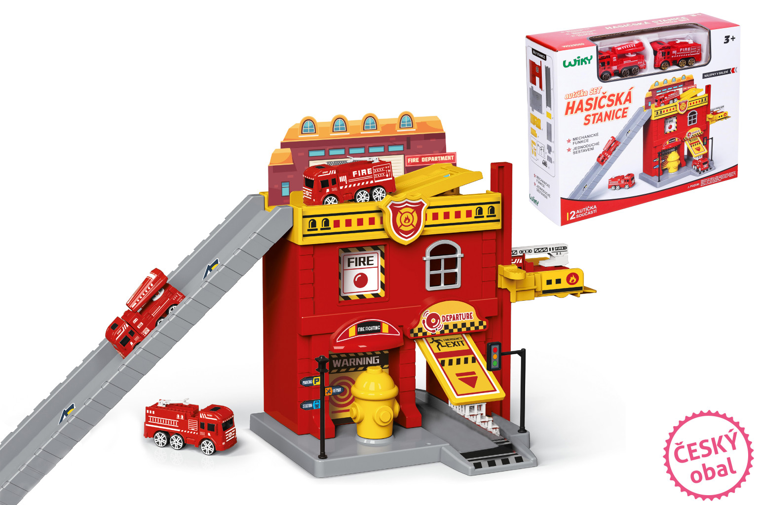 Dotaz na produktHasičská stanice. Rozměry 37x17,5x21 cm. Součástí dvě auta. Volná kola. Manuální výtah, otevírací dveře. Nálepky a obrázkový návod na složení součástí balení.