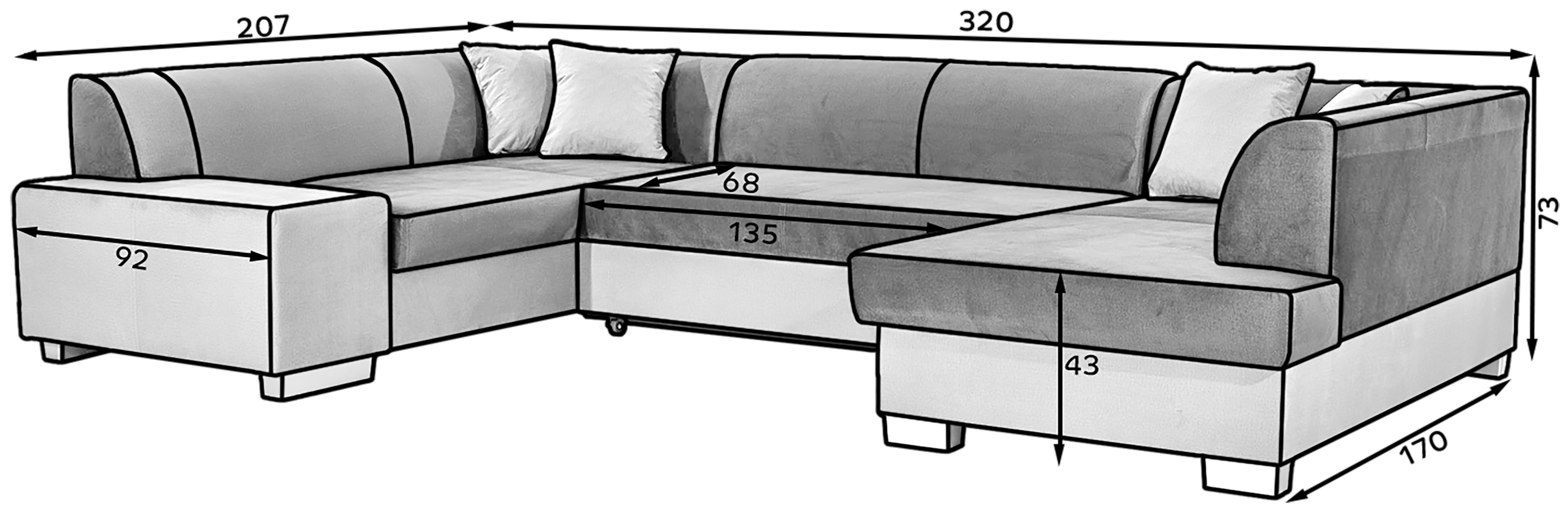 Dotaz na produkt Na splátky ještě dnesHavana je prostorná, luxusní čalouněná rohová pohovka o rozměrech 320 x 167/207 x 73 cm, takže poskytuje dostatek prostoru pro relaxaci. Tento kus nábytku ve tvaru U má pohodlný, měkký sedák vyrobený z odolné vlnité pružiny a pružné pěny T30, takže je celek odolný proti promáčknutí. Naše rohová pohovka je vybavena funkcí spaní a dostatečným úložným prostorem pro ložní prádlo. Intuitivní systém rozkládání delfín umožňuje snadno proměnit pohovku v postel o rozměrech 280x125 cm a získat tak opravdu velkou plochu pro noční odpočinek. Mezi další specifikace naší rohové pohovky Havana patří: klasický, osvědčený design, důraz na detail zpracování, jednoduchý geometrický střih. Rohová pohovka je dodávána také s velkými dekorativními polštáři. Havana je ztělesněním pohodlí a dobrého stylu, které se dokonale hodí do více než jednoho interiéru.Látky: Berlin 01, Soft 11