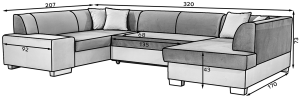 Dotaz na produkt Na splátky ještě dnesHavana je prostorná, luxusní čalouněná rohová pohovka o rozměrech 320 x 167/207 x 73 cm, takže poskytuje dostatek prostoru pro relaxaci. Tento kus nábytku ve tvaru U má pohodlný, měkký sedák vyrobený z odolné vlnité pružiny a pružné pěny T30, takže je celek odolný proti promáčknutí. Naše rohová pohovka je vybavena funkcí spaní a dostatečným úložným prostorem pro ložní prádlo. Intuitivní systém rozkládání delfín umožňuje snadno proměnit pohovku v postel o rozměrech 280x125 cm a získat tak opravdu velkou plochu pro noční odpočinek. Mezi další specifikace naší rohové pohovky Havana patří: klasický, osvědčený design, důraz na detail zpracování, jednoduchý geometrický střih. Rohová pohovka je dodávána také s velkými dekorativními polštáři. Havana je ztělesněním pohodlí a dobrého stylu, které se dokonale hodí do více než jednoho interiéru.Látky: Dora 96, Dora 90