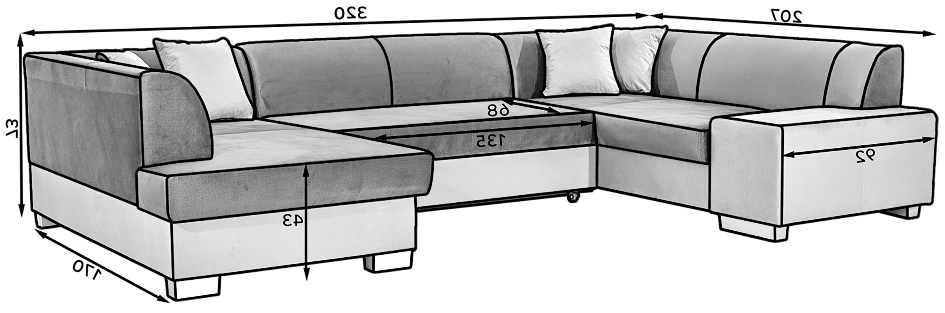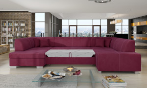 Dotaz na produkt Na splátky ještě dnesHavana je prostorná, luxusní čalouněná rohová pohovka o rozměrech 320 x 167/207 x 73 cm, takže poskytuje dostatek prostoru pro relaxaci. Tento kus nábytku ve tvaru U má pohodlný, měkký sedák vyrobený z odolné vlnité pružiny a pružné pěny T30, takže je celek odolný proti promáčknutí. Naše rohová pohovka je vybavena funkcí spaní a dostatečným úložným prostorem pro ložní prádlo. Intuitivní systém rozkládání delfín umožňuje snadno proměnit pohovku v postel o rozměrech 280x125 cm a získat tak opravdu velkou plochu pro noční odpočinek. Mezi další specifikace naší rohové pohovky Havana patří: klasický, osvědčený design, důraz na detail zpracování, jednoduchý geometrický střih. Rohová pohovka je dodávána také s velkými dekorativními polštáři. Havana je ztělesněním pohodlí a dobrého stylu, které se dokonale hodí do více než jednoho interiéru.Látky: Matný samet 68