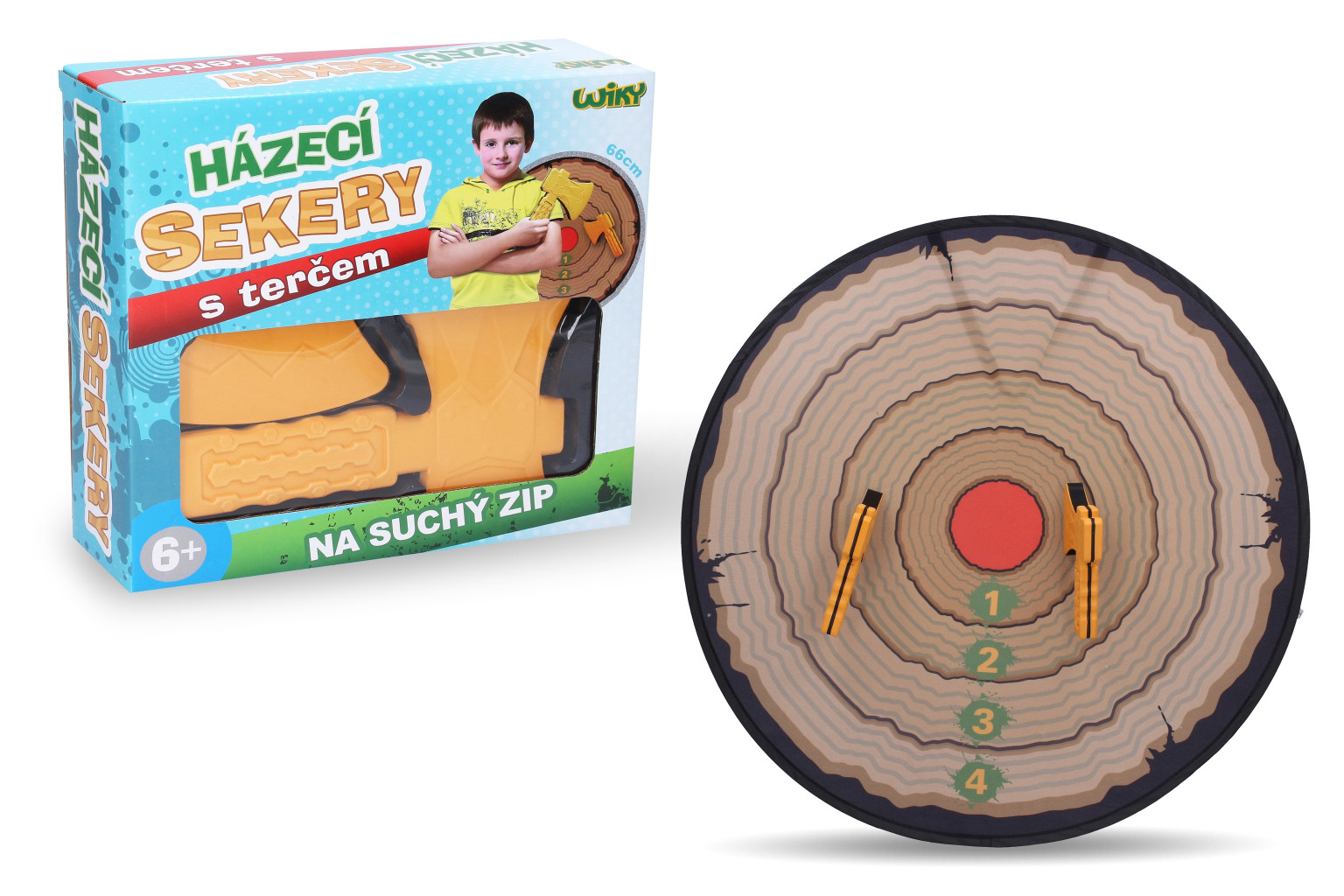 Dotaz na produktHázení sekerou, to je zábava pro malé raubíře, při které si procvičí zručnost. Součástí je terč s přísavkami, který jednoduše připevníte na zeď a 2 sekery se suchým zipem. Velikost terče: 66 cm. Doporučený věk: od 6 let https://www.youtube.com/watch?v=vpvl6H9EfS4