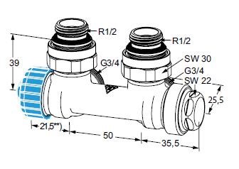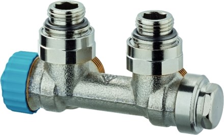 Multilux je radiátorová připojovací garnitura pro připojení otopných žebříků nebo topných těles bez ventilové vložky se spodním připojením s odstupem 50 mm.