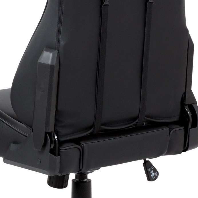 Kancelářská židle KA-F03 BK je vybavena houpacím mechanismem, který umožňuje plynulé naklápění opěradla v rozsahu od 90° a zajišťuje tak pohodlné sezení i při delší práci. Čalounění z černé ekokůže nabízí snadnou údržbu a kvalitní zpracování povrchu, který je příjemný na dotek a odolný vůči běžnému opotřebení. Plastový kříž zajišťuje stabilitu a lehkost celé židle, zatímco 2D područky umožňují nastavení výšky a horizontální polohy pro optimální podporu paží. Výškově nastavitelný sedák přispívá k ergonomii a přizpůsobení individuálním potřebám uživatele. Celková konstrukce je navržena pro dlouhou životnost a komfortní užívání v domácím i kancelářském prostředí.